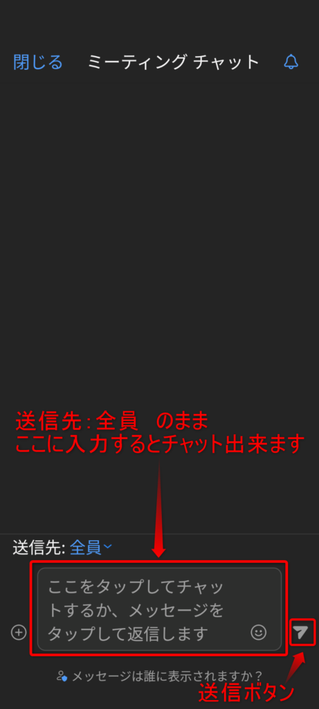 ③入力部分に文字を入れて、右側の送信マーク(紙飛行機)を押します。