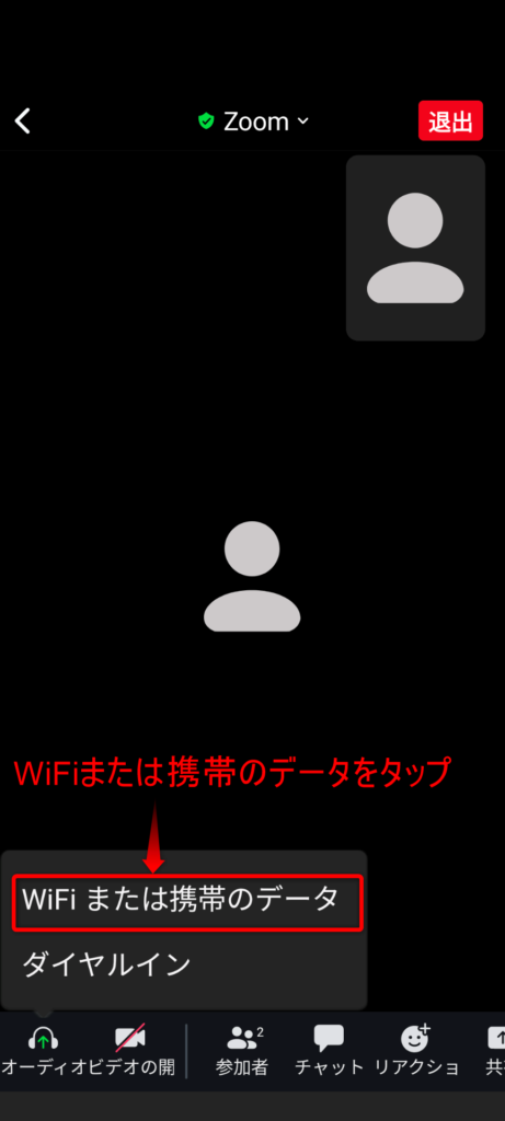 ① ①ZOOM URLクリックしてZOOMを開き、開いた画面をタップします。